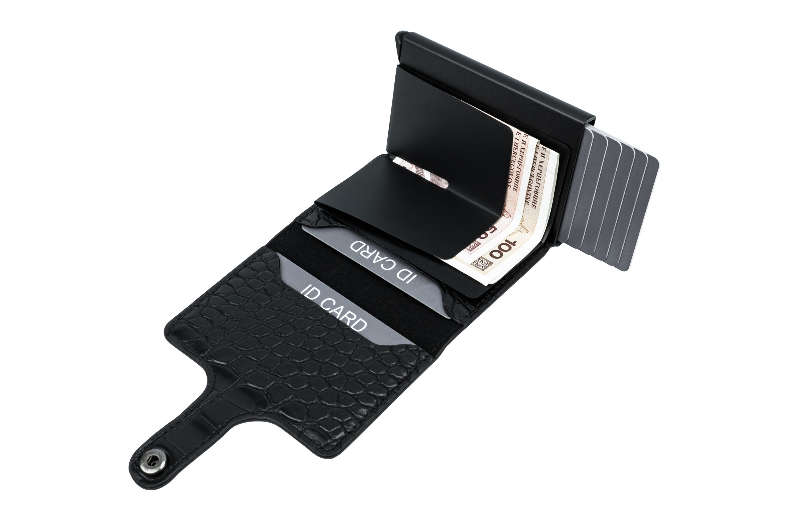 Materijal: PU koža Kapacitet: 8 kartica, gotovina Dimenzije: 10x7x2 cm RFID sigurnosna zaštita
